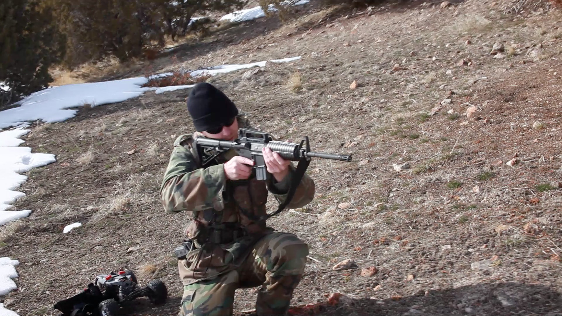 He showed me how to handle everything safely, and then he pulled out this big ol thing with a scope on it… I couldn't shoot it without getting popped in the shoulder, so I was pretty happy to just watch him do his thing.