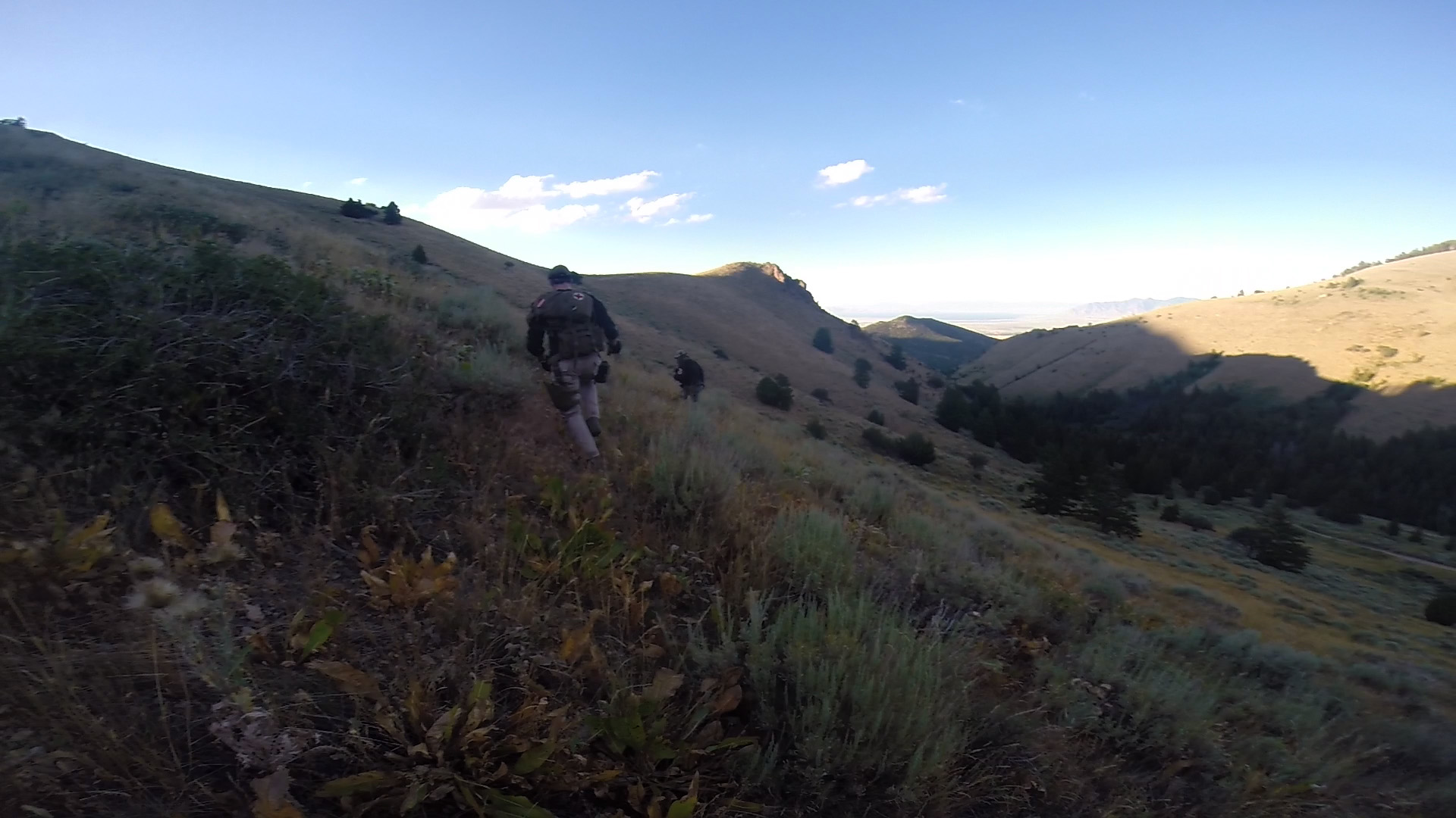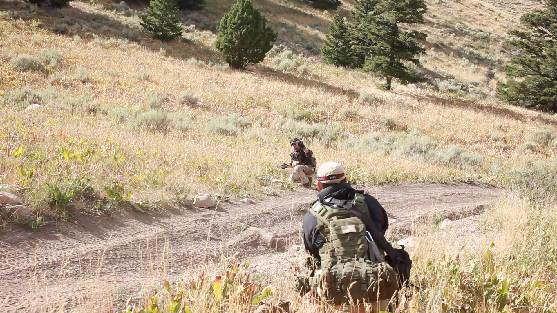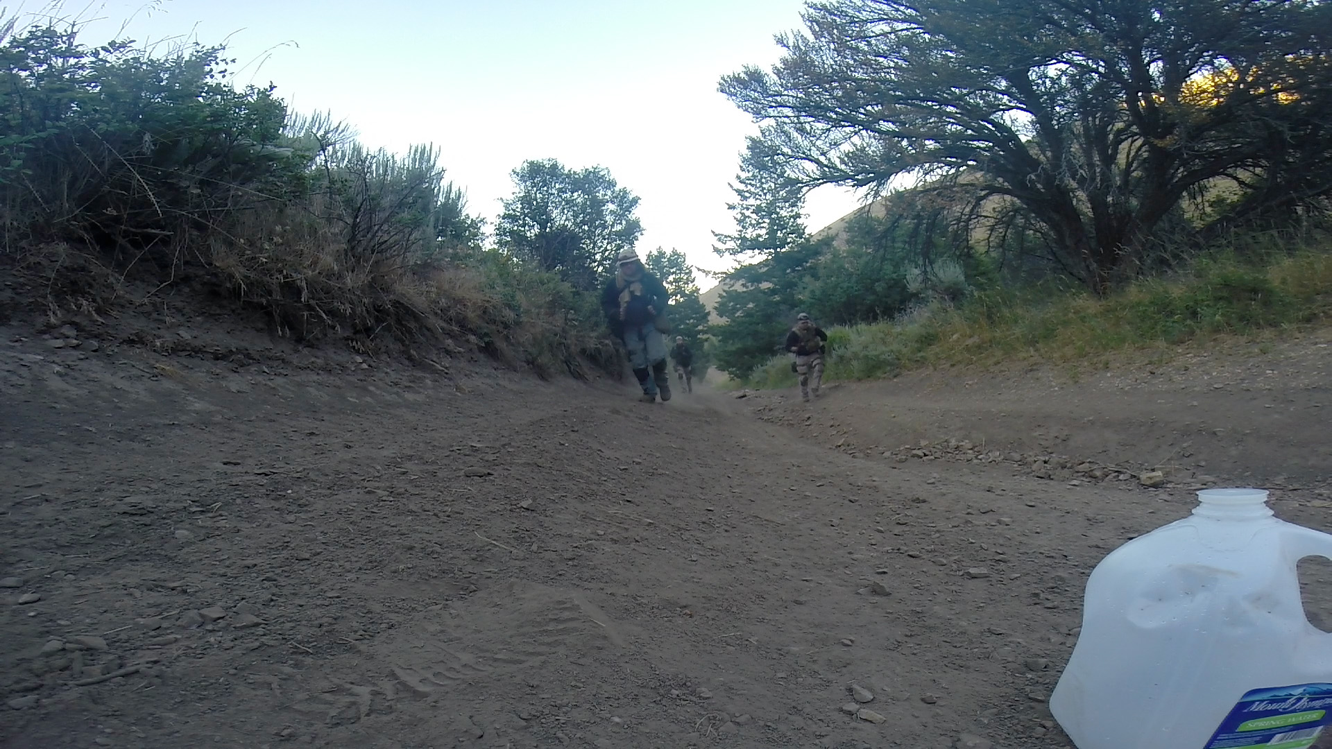 Flight team would descend from drop point to South side draw to find H2O source and camp (support crew access is down the road to the end of the draw)