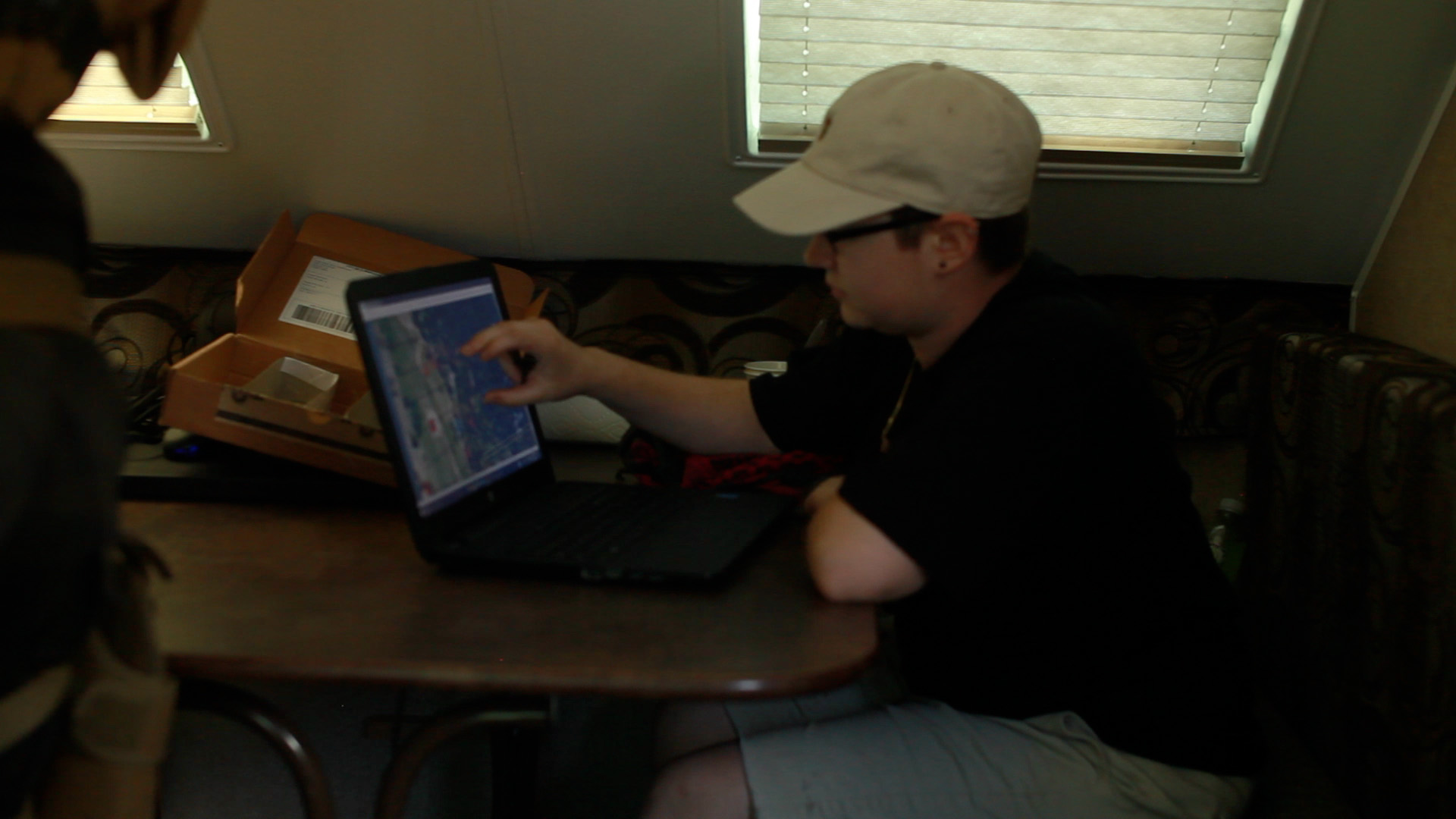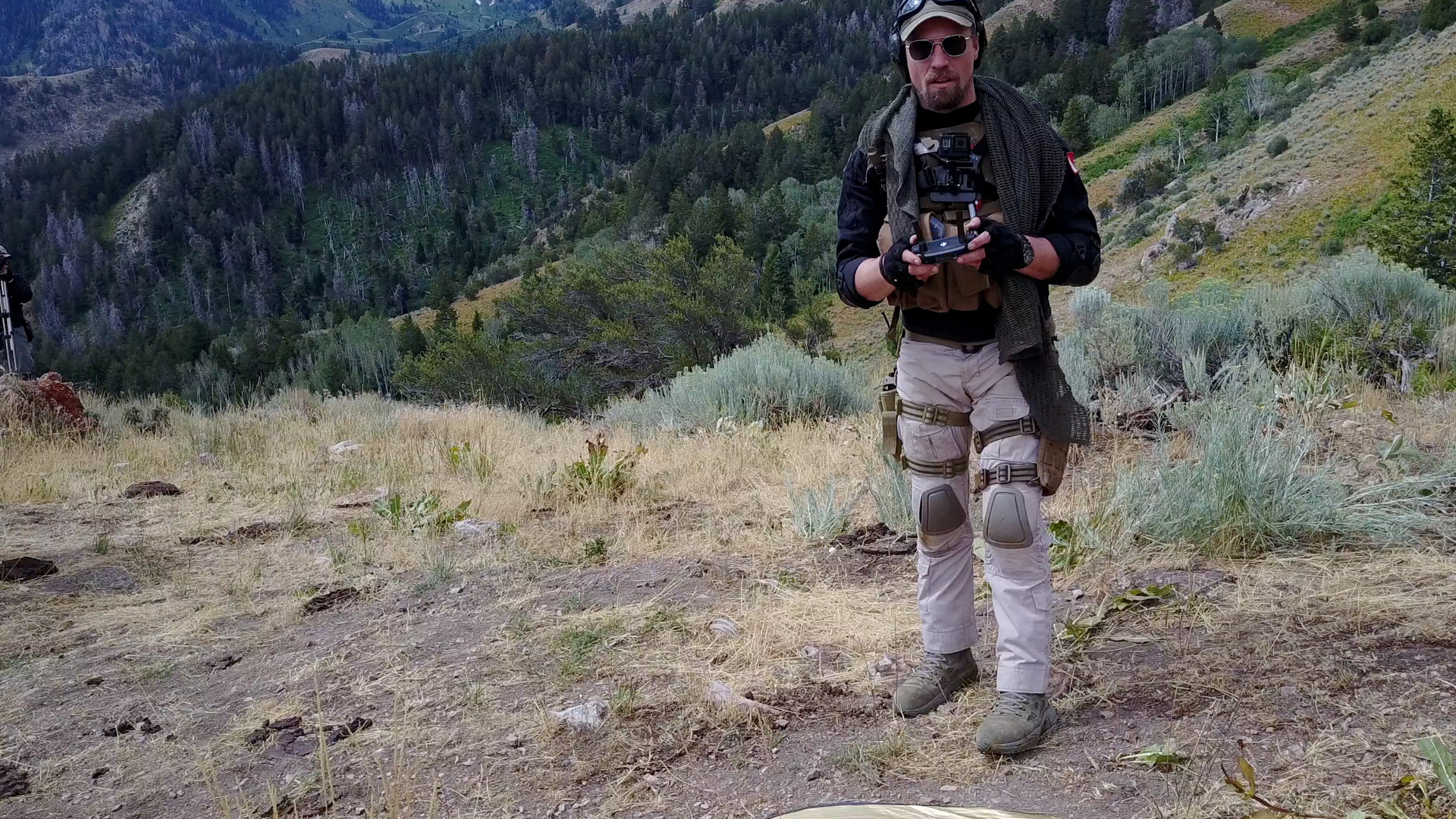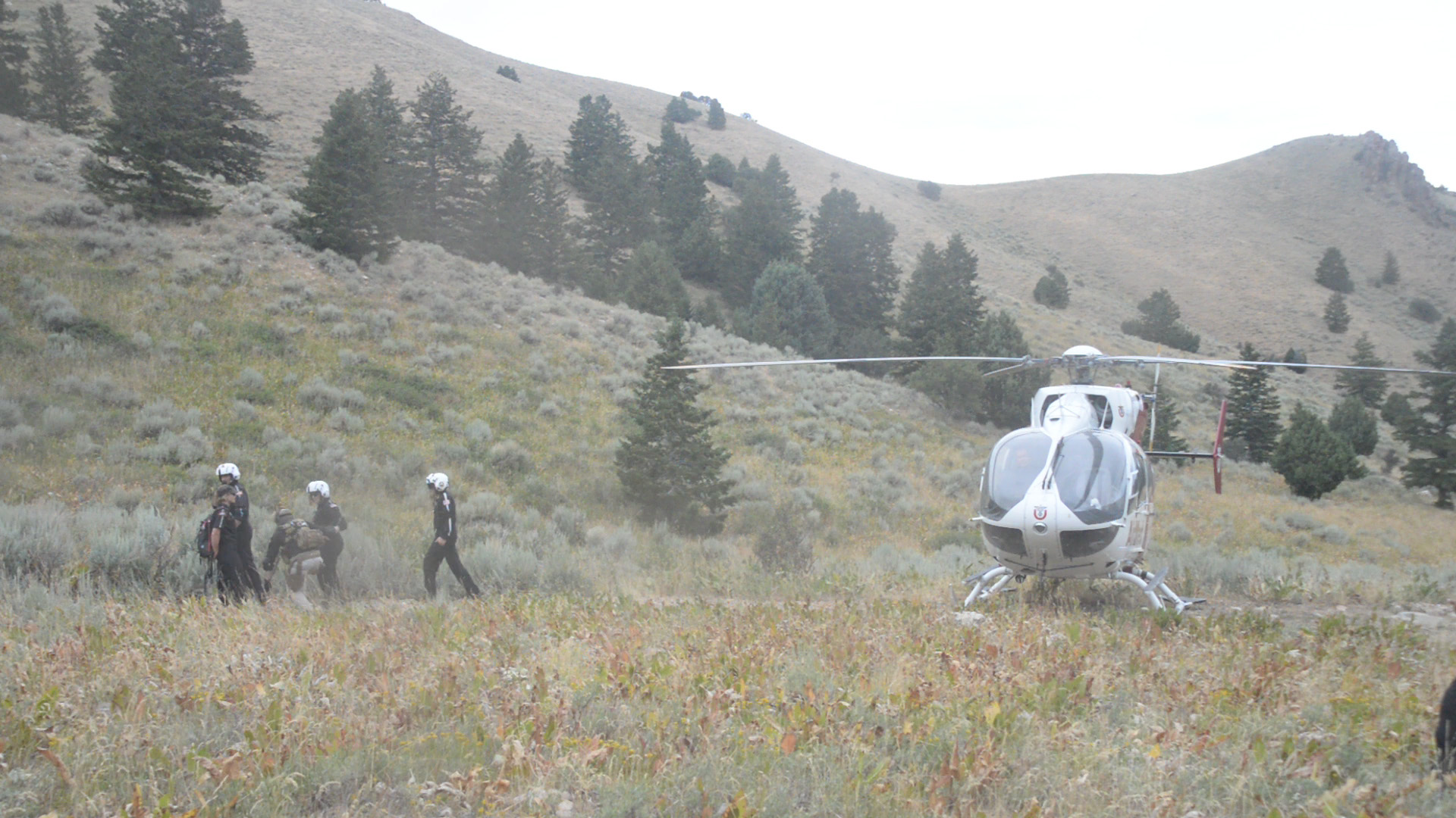Flight team would descend from drop point to South side draw to find H2O source and camp (support crew access is down the road to the end of the draw)