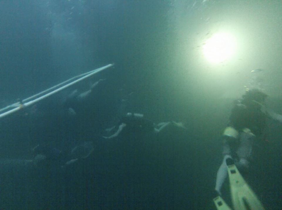 After entering a doorway into a snowy hillside and through a tunnel, a three man TZA detachment entered a massive subterranean cavern. At depths exceeding 75ft+ and water exceeding 90F+, Aquanauts took time to warm up after TZMD exercises earlier in the week.
