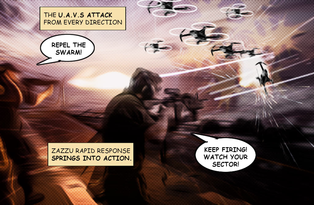 When Teame Zazzu arial operations come under a drone swarming attack, flight crews respond to repel the attack and out-maneuver the swarm.